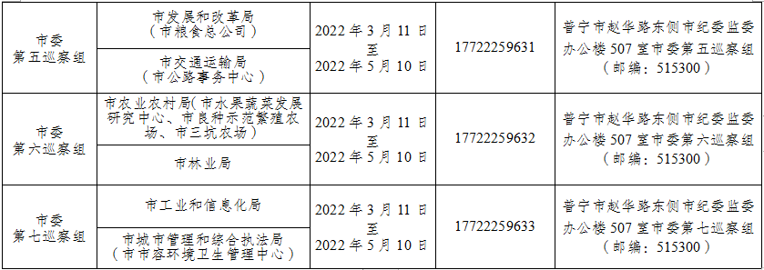 巡察期间,各巡察组分别设立专门值班电话、联系信箱等,主要受理反映被巡察单位领导班子及其成员、下一级党组织领导班子主要负责人问题的来信来电来访,重点是违反政治纪律、组织纪律、廉洁纪律、群众纪律、工作纪律和生活纪律等方面的举报和反映。