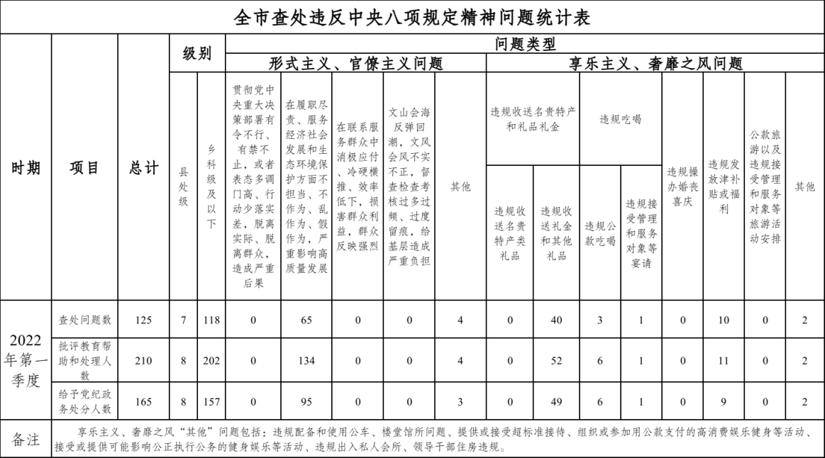 2022年第一季度揭阳市查处违反中央八项规定精神问题125起
