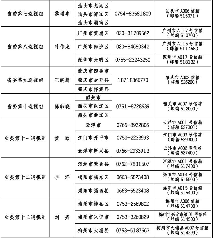 据了解,本轮巡视时间为9月底至12月中旬。巡视期间设专门值班电话和专门邮政信箱,主要受理反映被巡视地区领导班子及其成员、下一级党组织领导班子主要负责人和重要岗位领导干部问题的来信来电来访。