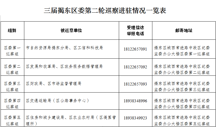 3月10日,揭阳市揭东区召开三届区委第二轮巡察工作动员部署会。区委5个巡察组将与市上下联动,对区发展和改革局、区工信和科技局、区财政局、市自然资源局揭东分局、区住房和城乡建设局、区交通运输局(区公路事务中心)、区市场监督管理局、区政务服务数据管理局、区农业农村局(区堤围管理所)等9个单位党组织同步开展巡察监督。
