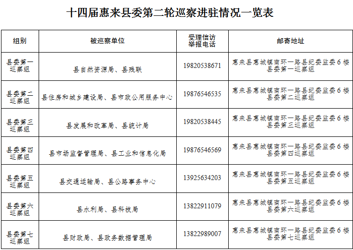 近日,惠来县召开全县巡察工作会议暨十四届县委第二轮巡察动员部署会,县委派出七个巡察组,对县发展和改革局、县工业和信息化局、县财政局、县自然资源局、县住房和城乡建设局、县交通运输局、县公路事务中心、县水利局、县市场监督管理局、县政务数据管理局、县科技局、县统计局、县市政公用服务中心、县残联等14个单位党组织开展巡察监督。巡察进驻时间从2022年3月上旬至5月中旬。