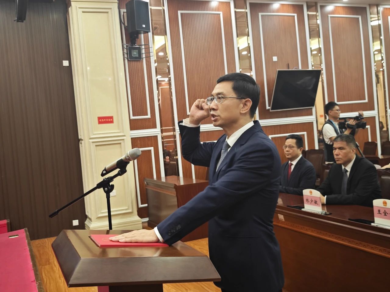 大会闭幕后,还举行向宪法宣誓仪式,新当选的揭阳市七届人大常委会主任曾风保依法向宪法宣誓。