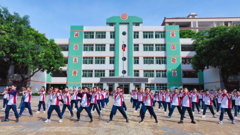 揭东区纪委监委推动解决进城务工人员随迁子女“入学难”问题。图为揭东区第五小学的学生们上体育课的场景