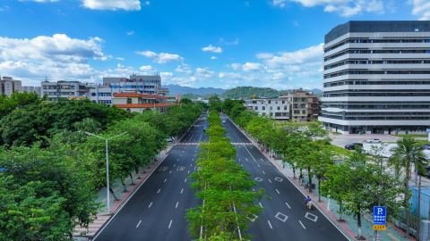 揭东区纪委监委通过靶向监督,护航“百千万工程”。图为揭东区金凤路(揭东人民医院路口至埔田高铁桥下)道路提升工程