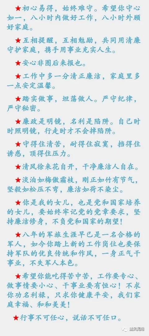 亲情是奋斗前进的动力,家庭是慰藉心灵的港湾。为发挥亲情促廉、家庭助廉的作用,涵养良好家风、助推党风廉政建设,揭阳市纪委监委开展书写廉洁亲情寄语活动,借助家庭“廉内助”和“护廉员”,强化对揭阳纪检监察干部“八小时以外”监督管理。这些寄语,既有父母的叮咛、夫妻间的勉励,也有子女的祝福,寥寥数语,寄托着亲人的关爱与期盼,构筑起廉洁齐家的防线。“七一”将至,特将寄语整理刊发,展铁骨柔情,与同仁共勉。